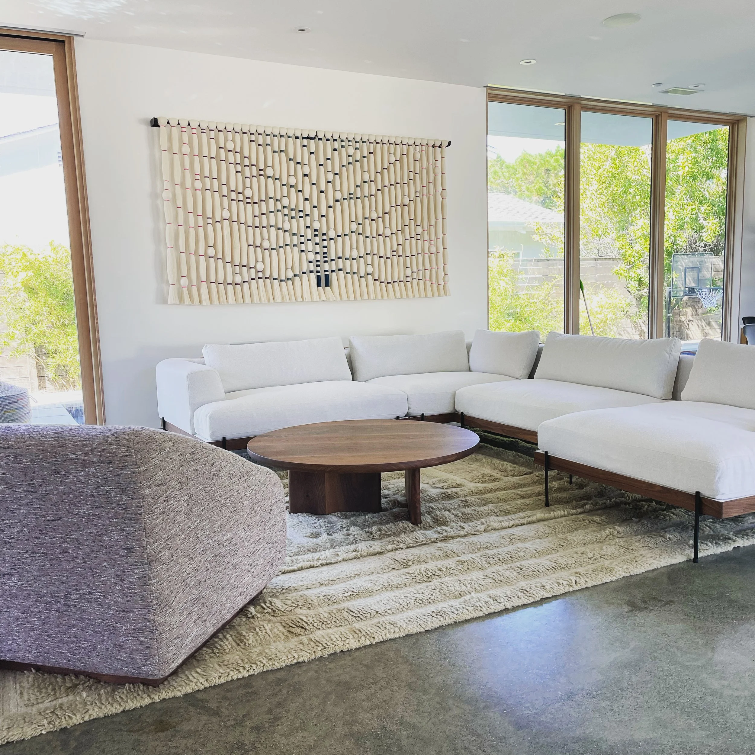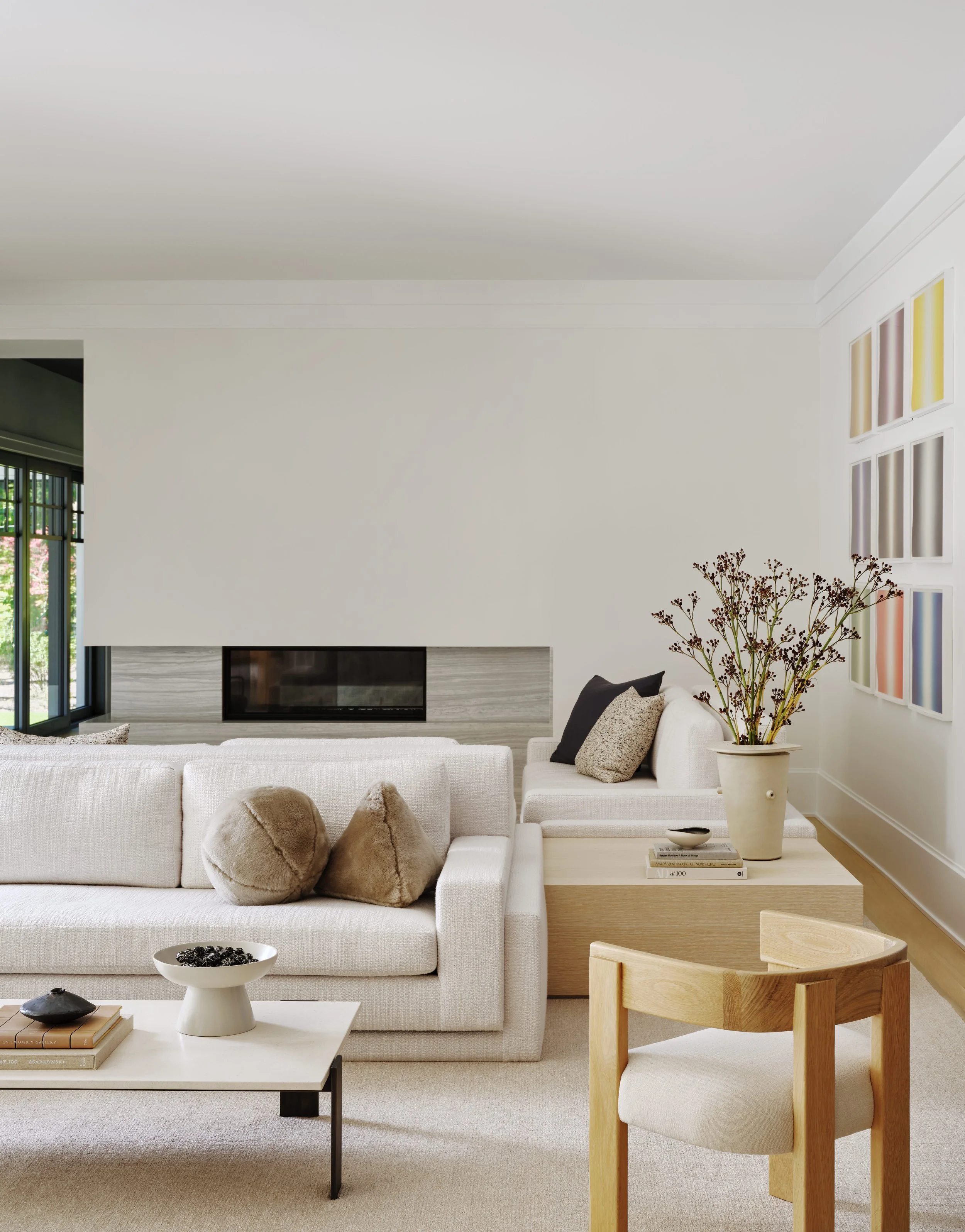 In our recent project, we embraced this concept by integrating natural and neutral textures, accented with playful colors in the textiles. The result? A living room that feels bright and airy yet warm and inviting.
