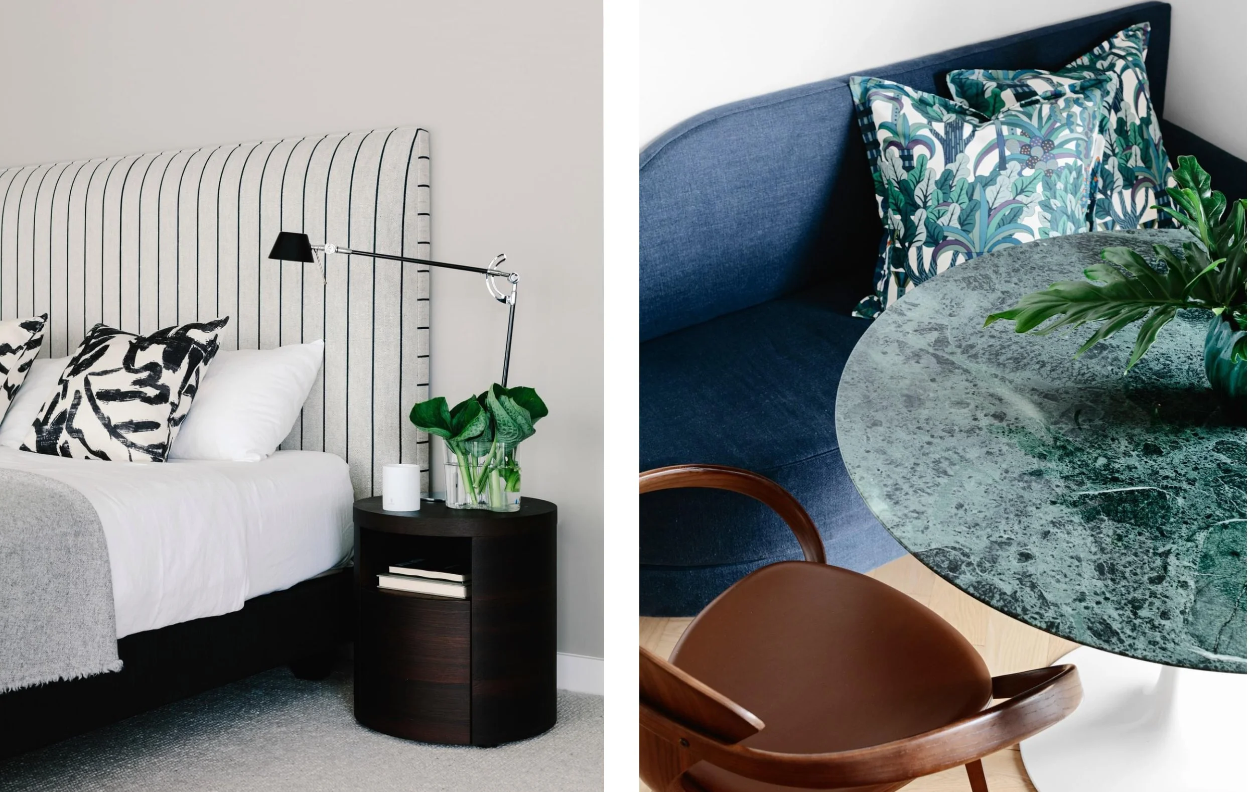Moving on to sofas, nooks, or benches – these versatile pieces deserve a pillow combination that commands attention. Start by anchoring your space with a 22-24 inch pillow at the back, then layer in a smaller 20-22 inch pillow at the front for added depth and dimension. If you're working with a corner setup, opt for a 24-22 inch pillow in the back and layer in a lumbar pillow for a cozy finishing touch.
